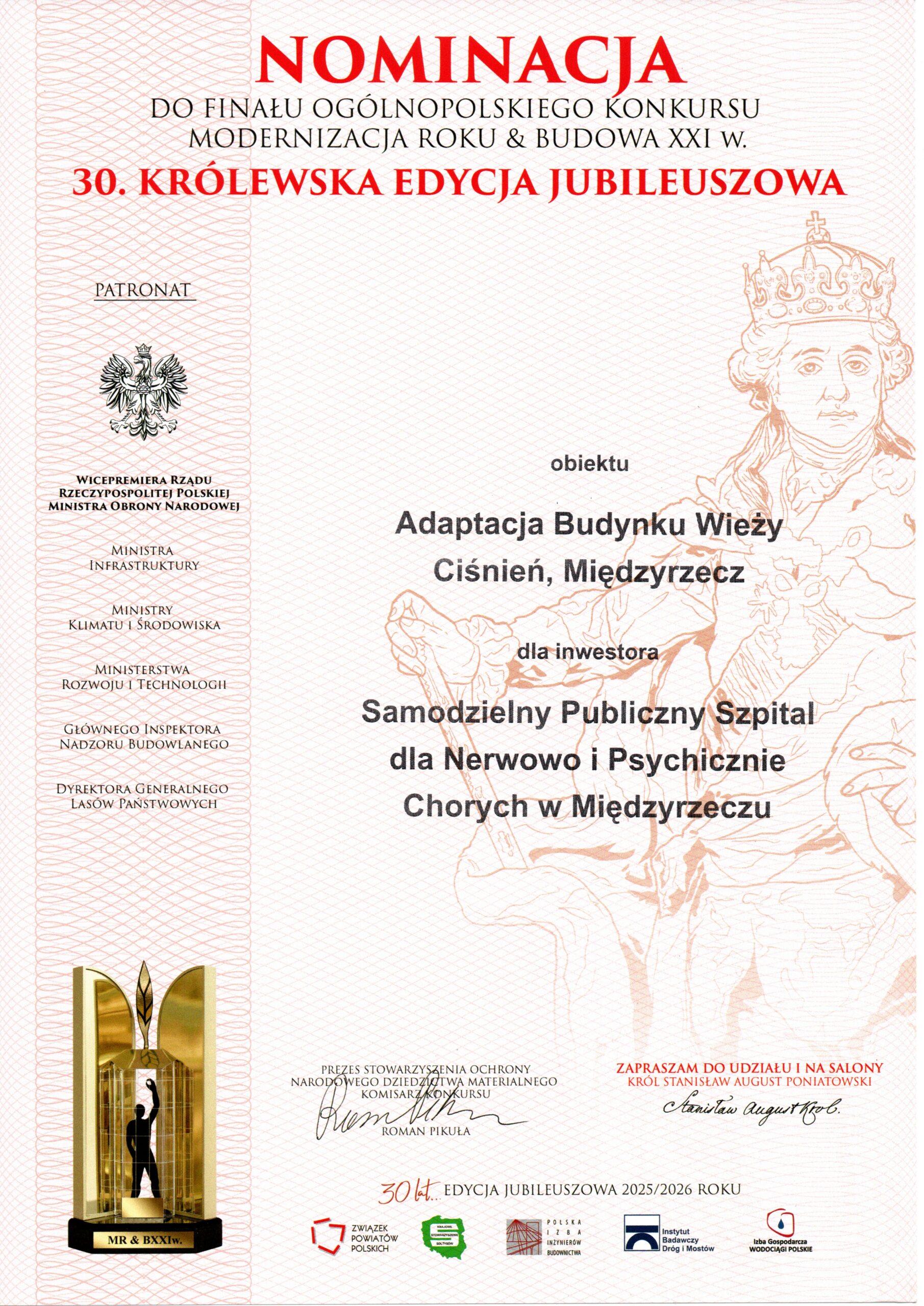 To dla nas ogromne wyróżnienie, że historyczny obiekt z terenu naszego Szpitala znalazł się w gronie najpiękniejszych i najlepiej odrestaurowanych budynków w kraju. Wieża w Obrzycach od ponad 120 lat czuwa nad naszą okolicą, teraz jej blask zauważyła cała Polska!